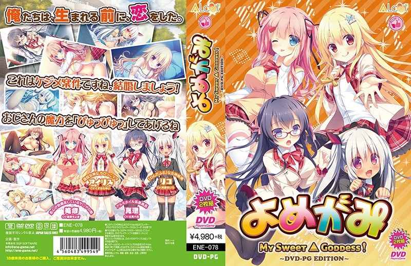「よめがみ My Sweet Goddess! DVD-PG Edition」が、お得になって帰ってきました!(本商品はE-ne!「ENE-078」の廉価版となります)善行を積むために人間界に降りてきた主人公を取りまくのは、女神な○リママ、仁義なきおっぱい、へっぽこ黒スト委員長、犬耳ぺったん娘。甘々で騒がしく、ちょっぴり切ない’恋愛神話’はこうして幕を開けた――