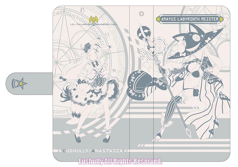 『天結いラビリンスマイスター』の新規キャラクターを白系でポップなイメージにデザインしたブック型スマホケースです