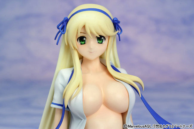 究極爆乳ハイパーバトルアニメーション「閃乱カグラ」より、「葛城」をリリースいたします。国立半蔵学院の豪快な姉御が、キュートな女の子座りで登場!大胆にはだけたシャツからのぞく、忍クラス一番を誇る巨乳は、けしからんほどのド迫力で完全再現!さらに、ずり下がったスカートのおかげで縞々ぱんつがあらわに。パワフルな蹴り技に用いる特徴的な具足も抜群の質感で造形しました。しかも「やわらかシャツ仕様」なのでお楽しみはまだまだ続きます。