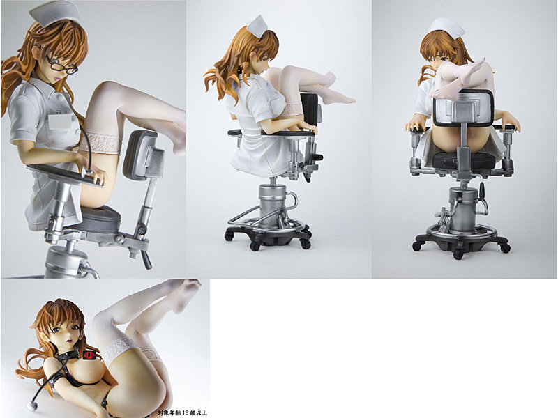 「G.J?」より発売された『あなたの知らない看護婦~性的病棟24時~』の白鳥天音を人気原型師 片桐克洋氏(Vispo)が新解釈により初立体化!!ゲーム中のメガネシステムを忠実に再現するメガネの他、聴診器や手術用の椅子が付属する豪華仕様!さらに、パッケージは救急箱型の特別仕様!!腕の付け替えにより別のポージングが可能!